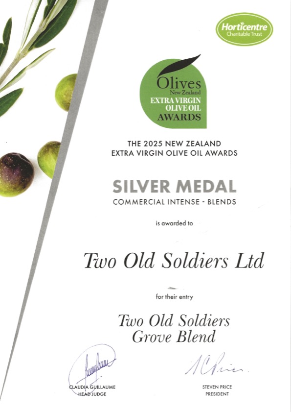 Our harvest meets the International Olive Council standards for Extra Virgin Olive Oil and also Olives New Zealand Certification
